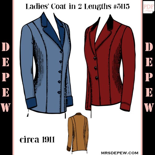 1910s Vintage Sewing Pattern 1917 Ladies Military Coat Pattern 38 Bust Depew 3125 Instant Download